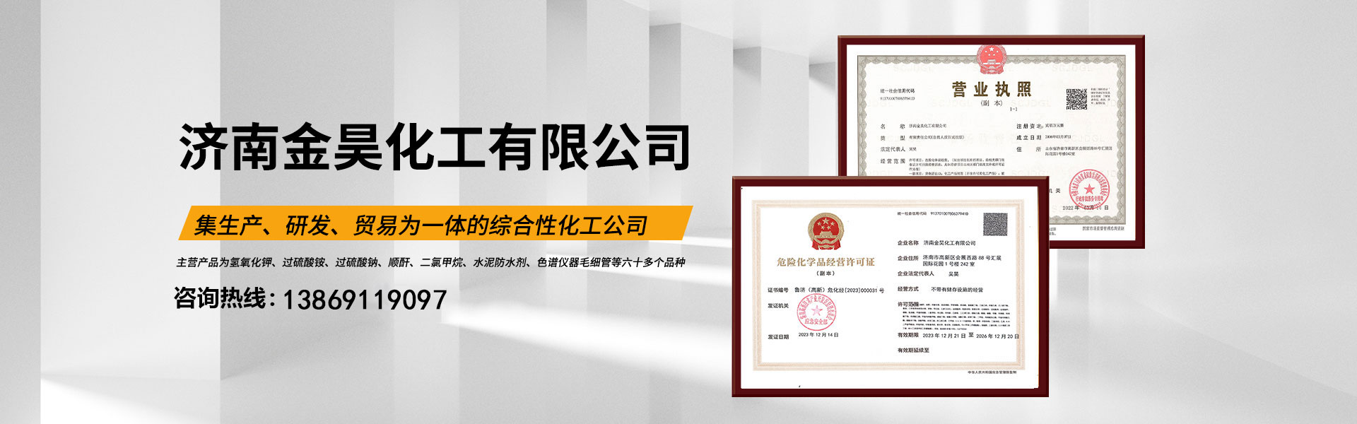 我公司是一家集、研發、貿易為一體的綜合性化工公司。主要涵蓋無機化工產品、化工產品、實驗儀器等幾大系列。主營產品為氫氧化鉀、過硫酸銨、過硫酸鈉、順酐、二氯甲烷、水泥防水劑、色譜儀器毛細管等六十多個品種。產品主要用于農藥、農肥、水處理、制藥、造紙、冶金、建筑添加劑、橡膠制造等多個領域。 歲月不居,時節如流。公司于2006年成立,如今已十幾個年頭了。一路走來我們一步一個腳印,兢兢業業,誠信經營,如今公司已發展成為年銷售額近陸仟萬元...